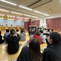 ひまわり組さんの発表会と園での活動の様子をプロジェクターで鑑賞しました。