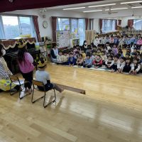 3月生まれの誕生会がありました。以上児は、ばら組1人とふじ組1人の2人でした。未満児は多くて8人いました。