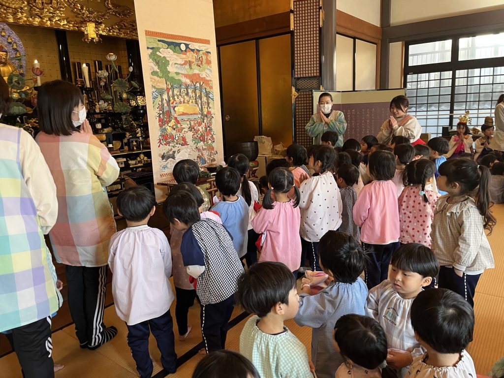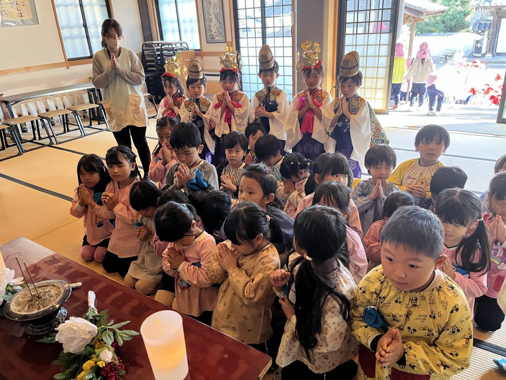 じょうどうえ、お釈迦さまが、みんなが幸せになる道を知ることができた日です。手を合わせることは、ケンカなどをしない、仲良しになれる姿を学んだよ。