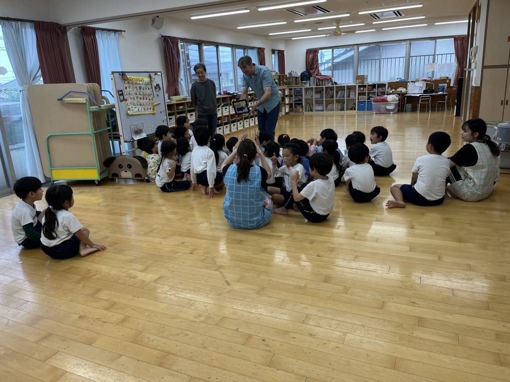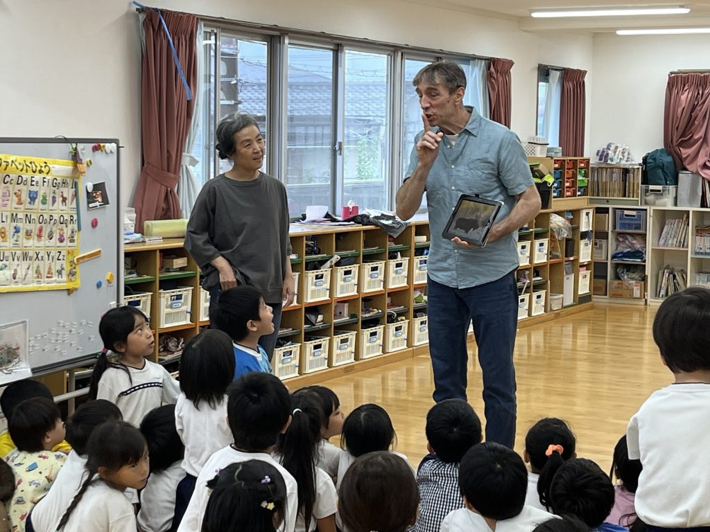 ピーターさんとマリ子さんが、やってきました。ハロウィンのお話を英語で聞いて、発音も教えてくれました。トリックアンドトリートお菓子をくれないといたずらするよ。