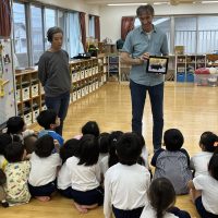 7月生まれの誕生会がありました。お祝いの後、クラス毎に歌のプレゼント。園長先生からは、特別にパネルシアターのプレゼントがありました。