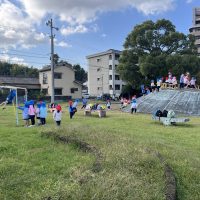 10月生まれの誕生会がありました。園庭で、玉入れをして遊びました。